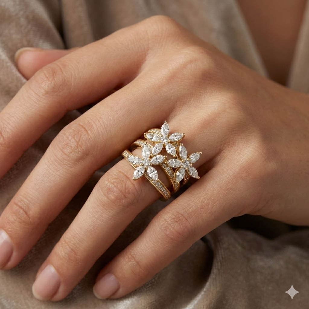 Each flower ring is meticulously crafted with attention to detail. The delicate floral designs showcase fine artistry that mimics the beauty of real flowers. Constructed using high-quality materials, these rings offer durability without compromising on their lightweight and comfortable design. Perfect for long-lasting wear, they are a delightful fusion of aesthetic appeal and practicality.