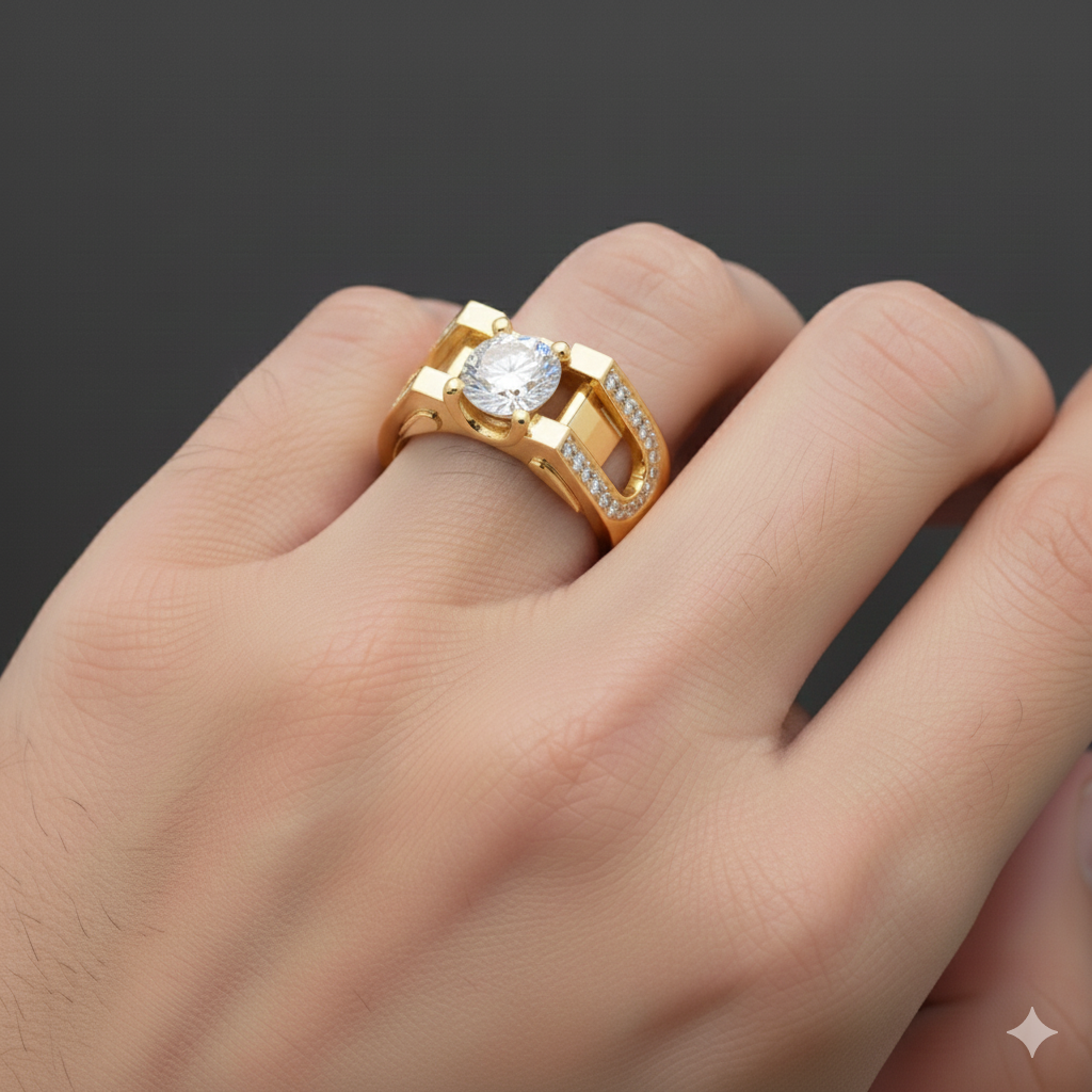 Each aspect of this king’s ring is thoughtfully designed to combine modern craftsmanship with historical charm, reminiscent of royal treasures from centuries past. The central diamond, selected for its exceptional clarity, radiates brilliance while the loose diamonds shimmer, creating a harmonious symphony of light and luxury. The band is made of premium-quality metal, skillfully polished to complement the dazzling stones and ensure durability that lasts a lifetime. It’s a true marriage of art and engineering.