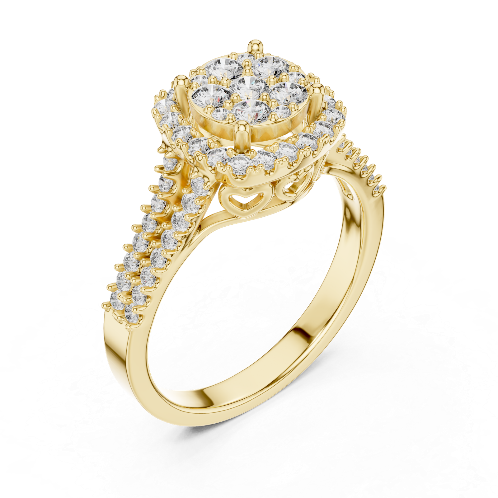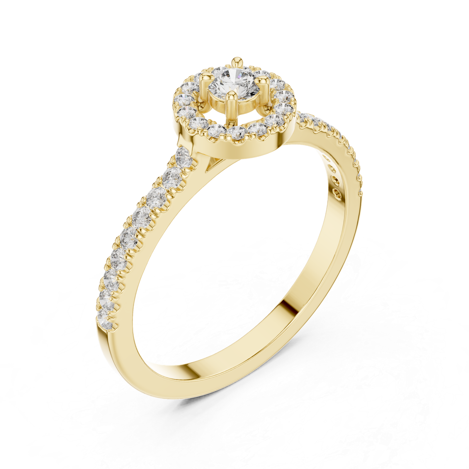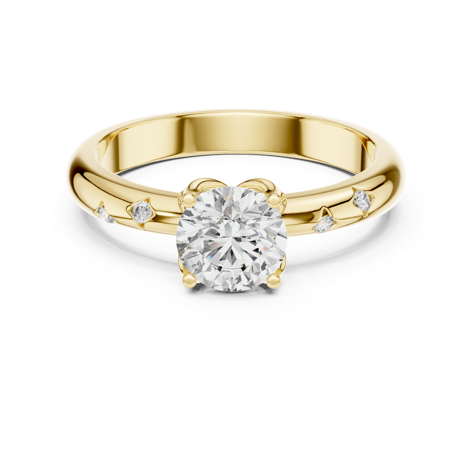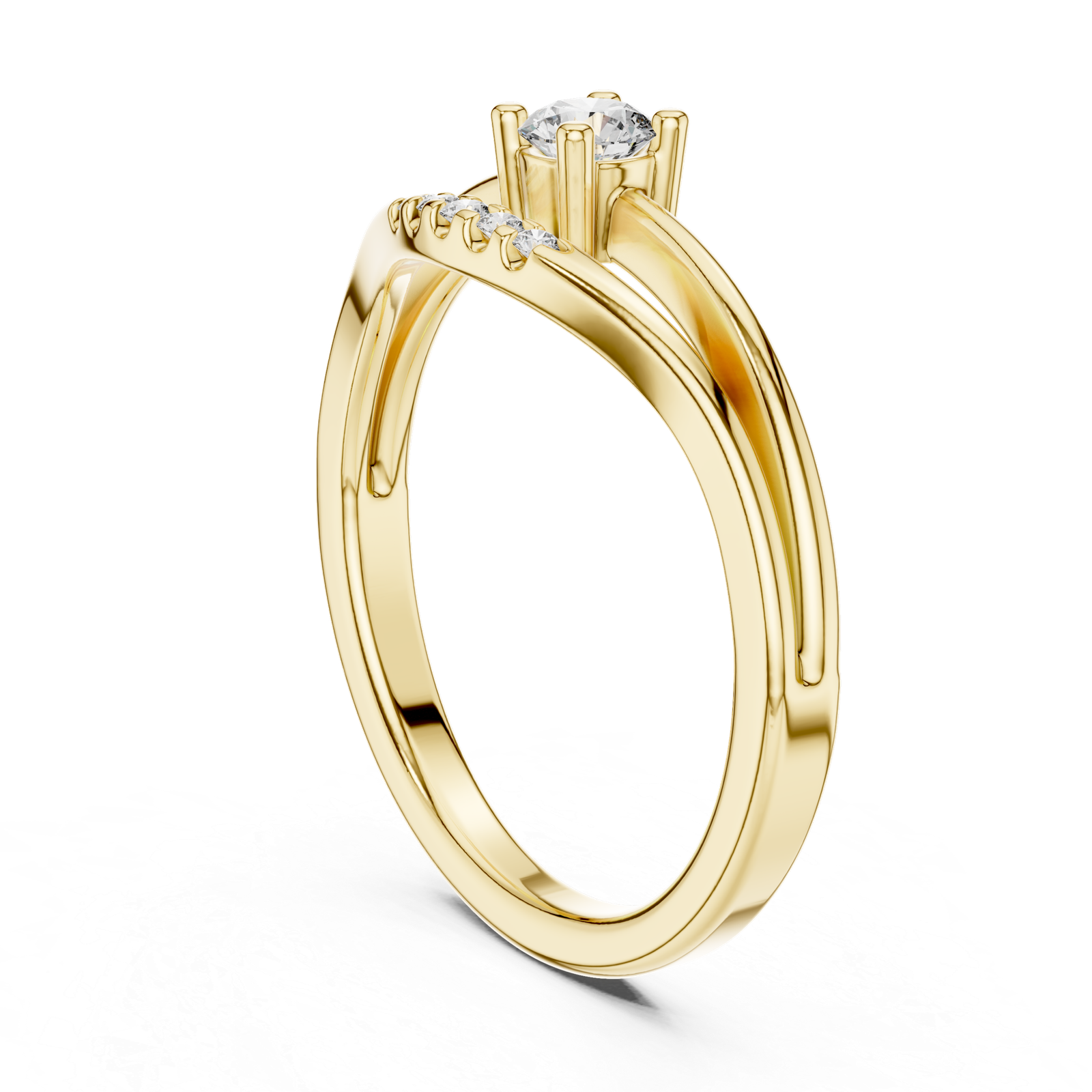 Indulge in the world of timeless sophistication with this central diamond ring—a flawless composition guarded by five minimal diamonds designed to captivate and delight.