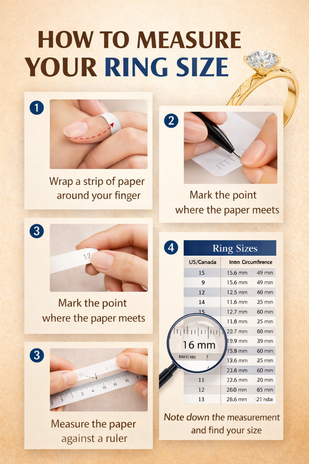 | Note: Each ring is crafted to order based on your selected size. Minor variations in gold and diamond weight may occur. | |||