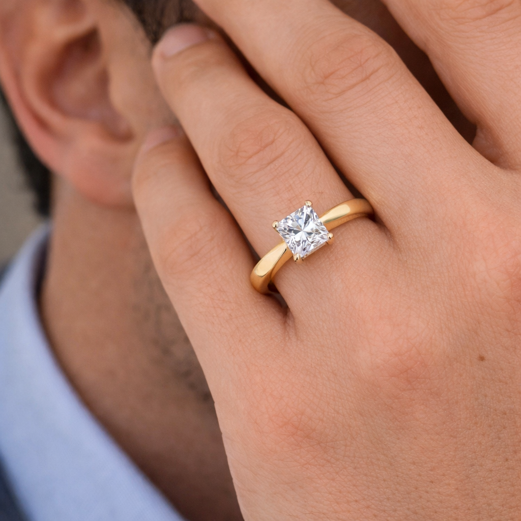 Make your unique style statement with the Square Uplifted Solitaire — where beauty meets exceptional design for those who value elegance in every detail.